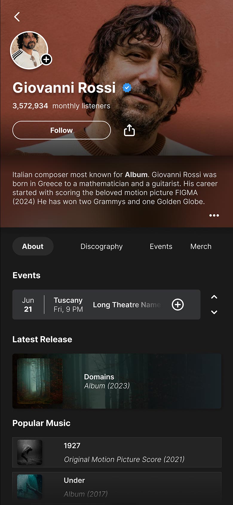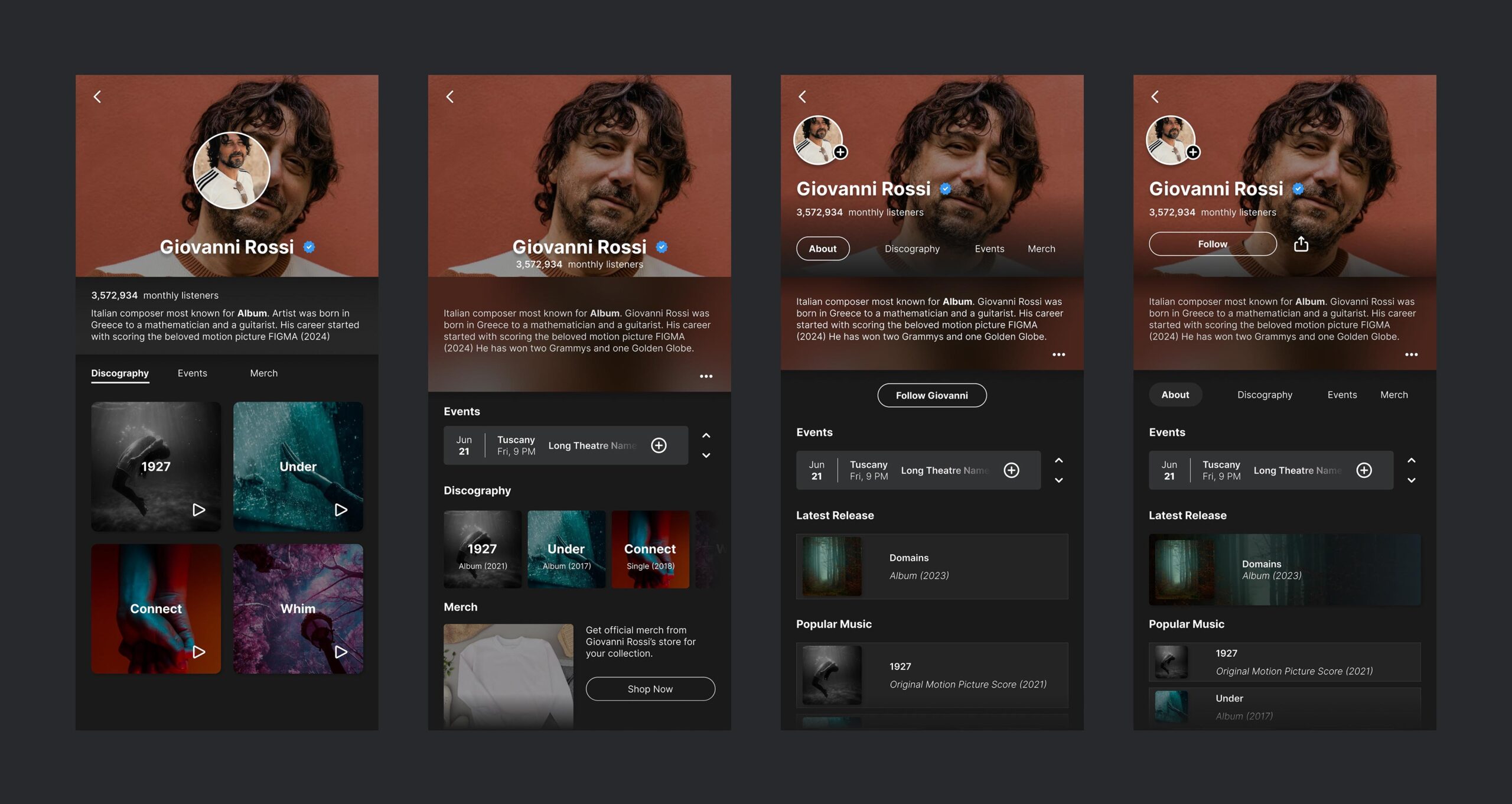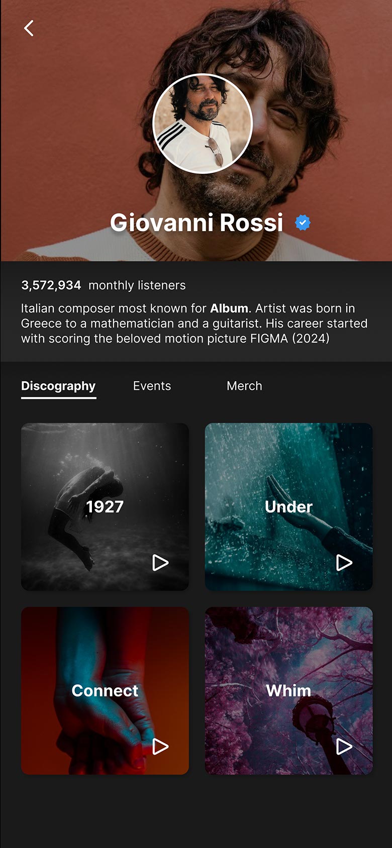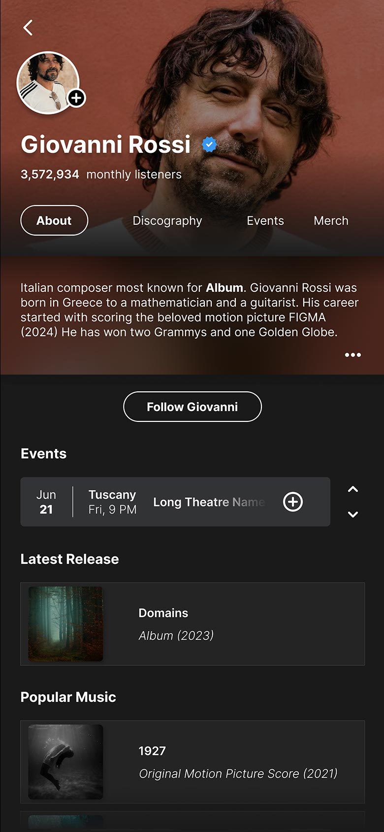 To hone my skills in UI design, I visited a site called Sharpen.design and accepted one of its challenges. The task was to create an artist profile for an Italian composer. I initially thought this would be easy since I had done this type of project frequently for mobile in the past.
